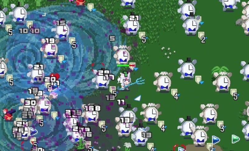 普通に操作すると移動方向に攻撃することになるが、マウスあるいはゲームパッドの右スティックを使うと移動方向とは別の方向に攻撃できる。(Zキーで攻撃方向の固定も出来るが、8方向限定)